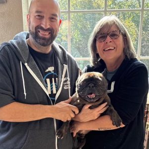 Foster mom, Trish, says that he is great on walks, great with dogs & cats and full of energy. He would thrive in an active home! Now he is transferred over to the Ranch, he has strolled in here like a boss and thinks this place is pretty dang fun. He is pretty much a perfect frenchie. All the love plus all the fun!