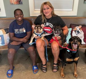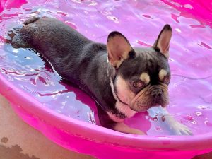 The final Bug is flying away to his forever home today! Beetle has been a sanctuary favorite with his hilarious personality and devilish good looks. After seeing his pictures on the page, Karyn Sanchez from Plano, Tx decided to put in an application for him. He met Ella the Frenchie and Max the Doberman and all was well, so he put on his fancy new outfit and walked right out the door with his new family. He already loves his new human brother and played and played with Ella before loading up in the car. His name will stay Beetle, and we hope to see lots of him on Happy Tails. I’m told he has a baby pool waiting for him at home so that he can continue to live his best waterbug life. ![]()