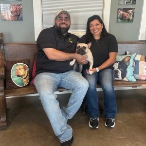 Like many dogs rescued from puppy mills, Bobtail was timid and unsure—she belly-crawled through the Sanctuary lobby to meet her new family. Javier and Jennifer Barrea of Carrollton, TX had recently lost their beloved Frenchie to the heartbreak of IVDD, a condition that sadly affects so many in the breed. Still, they knew their hearts had room for another. After all, there’s nothing quite like having a Frenchie in your home… or two, or three.