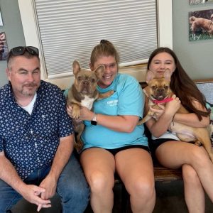 Jill came back by herself with matching “twinning” halloween shirts to do the actual adoption and they were totally adorable in their new shirts!!! Now with two new Frenchies in the house, she couldn’t be happier!