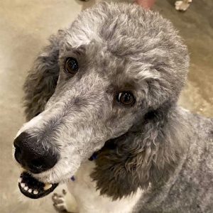 This handsome fella was in need of a lot of grooming and thanks to our kind volunteer, Liz, for being up to the task. He’s a six-year-old Standard Poodle, smart and oh so friendly.