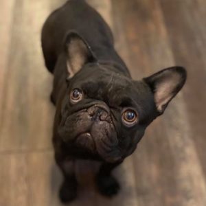 Dewey is finally settling in. He is sleeping so much better since getting his “breathing bone”. He is even starting to show interest in playing now that he’s more rested. He always knows when someone is in the kitchen and thinks he should get a piece of everything. This stout boy is a real love bug and just as sweet as they come.