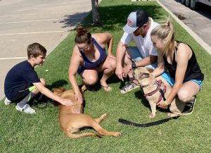 It was a big family affair…….And away went Jake and GeGe to their new home in Hollister, CA with Katie and Sean Anderson, son Cody and daughter Brooklyn. There they will live with horses and other fur siblings Bill, Louie, Violet and Boomer.