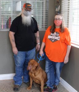 Godzilla left today with Hank & Deb Bowers from North Platte, NE. They made the very long road trip to Texas to meet Godzilla and bring him home for Thanksgiving. They previously owned a male Dogue de Bordeaux and love their temperament stubbornness. Their boy passed away at 13 years old leaving them crushed. He will be the only dog in their home and he will have Deb home with him every day and off he went into the sunset.