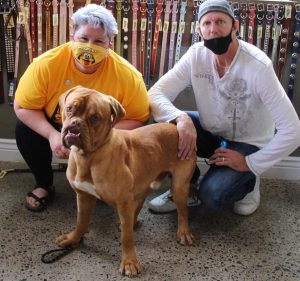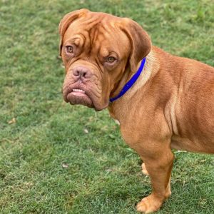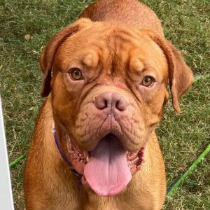 This is the adult male and father of the 4 pups. He is a very sociable guy. He will be named Grant Sisemore who is a pharmacist who works upwards of 70 hours a week, doling out prescriptions and administering vaccines. He broke his foot and does all of this on a knee scooter. Anyhow, he is a huge bear of a man, but so gentle, like many Bordeaux’s.