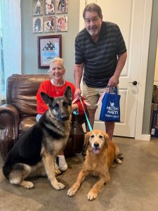 David and Cathy Cooper of Spring Branch, TX, submitted the application for the pair. They had recently lost their Lab in November, and the house had become far too quiet. What really stood out was their experience with both Golden Retrievers and German Shepherds—exactly the kind of background that made us feel confident about this match.