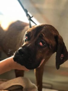 The first pup seen here is the one I chose to take home with me in order to save one. It’s a little girl who is one of the pups that has been bitten by the other starving pups. She has cherry eyes so big and so bad that it has to be difficult to even see. I visited with her earlier this afternoon at Dr. Reno’s when I took Baby Girl for a blood draw. She smells horrible, she is covered in filth and infection, she pees nervously when you even look at her and she’s starving.