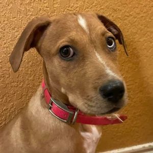 Joanie was adopted by the Sadler family today. Autumn and her son made the drive from Gunter to pick her up. They have been looking for a playmate for their 2yr old hound mix and Joanie fit the bill. She’ll also have a 14 yr old Puggle sister and 2 human brothers. They have a big back yard for lots of running and playing. They are still thinking about a name and will let us know. There are no words to describe how happy I am that this very special sweet girl is going to have her own home/family, be loved beyond measure and have a wonderful life. Can’t wait to watch you grow up on the Happy Tails page.![]()