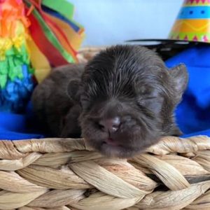 Mama Extra is a brown Pomeranian and Daddy is a Shih Tzu.
