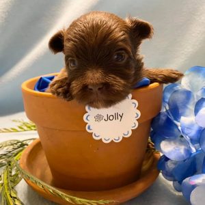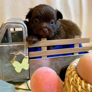 Jolly is going to live with Janet Lara in Houston, TX. Janet and her dad drove up to adopt this sweet boy. Janet lost one of her dogs last May and felt now was a good time to adopt a new puppy. About 3 years ago Janet adopted Apple Cinnamon (nka Luna) who was one of Cheerios puppies. Luna wasn’t too sure what to think of her new little brother at first. Jolly is a pup who likes to observe his surroundings but once he is comfortable watch out because he will show you his naughty side. He loves to play in water. His new name will be Chocolate Chip. The name fits him perfectly, don’t you think?