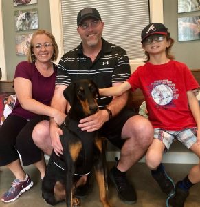 Liam was adopted today by Jennifer and Kevin Harshbarger from Odessa, TX. He will have two kids of his very own: 15 year old Chloe and 8 year old Max. Max was there today and did a great job walking Liam around to go potty before their long trip home. He will also have a kitty sibling named Skittles. His new name will be Rocky. They picked this name because he had a rocky start in life and he is a fighter