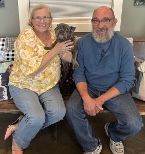What a lucky lucky day for Midge! After spending 4 months at the rescue wondering when her forever family was going to come along, today was finally the day we all gave our kisses and said farewell to this sweet old lady. Midge caught the attention of Pamela Harding & Paul Annis from Houston, TX who saw the same spark in her eyes that we did. It was a match made in heaven! Pamela and Paul fell head over heels in love with Midge’s adorable face and couldn’t resist the opportunity to provide her with a loving home. They will be keeping her name as Midge or as Pamela has started calling her, Princess Midge since she’ll be living the rest of her days as a spoiled princess in her new custom bedazzled collar. As Midge embark’s on a new chapter of her life, we couldn’t be happier for her knowing that she will be showered with love, care, and endless belly rubs in her new home. She will forever have a warm bed to sleep in, a backyard to explore, and a family who will cherish her unconditionally. We can’t wait to see all the amazing adventures along your way on Happy Tails. May your days be filled with endless joy, toys, and an abundance of love. Have a happy life Princess Midge!