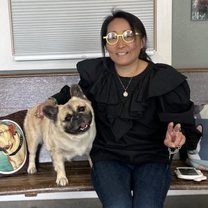 Holly Barzyk came from Washington DC to adopt sweet, fluffy Olive. If you remember, she had also adopted Gravity, now Annie Oakley. She will now live a wonderful life as Eleanor June in a very dog friendly neighborhood. Annie Oakley would stroll around with Holly to the deli and get treats of turkey or chicken. We imagine Eleanor June will fit right into this new lifestyle.