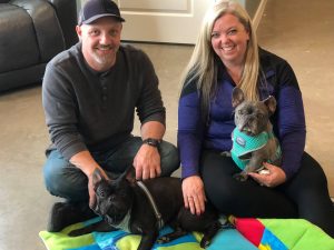 Flannel and Orchard were adopted together today and will go to live in Broomfield, CO with the Roberts family. Their new dad Jason is retired and will be home with the girls during the day to continue house training and help them adjust to their new life outside of the mill. They came to the sanctuary today to meet their new girls and drive them both home to Colorado.