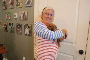 Paddington Bear is going to live in Liberty Hill, TX with Cindy and Marty Michell. They applied for her the minute she was born and have anxiously been waiting for her to be old enough to leave for adoption. For many years they have taken in hospice and senior dogs that need to live out their lives in safety and they now look forward to having a puppy who can play with them in their retirement.