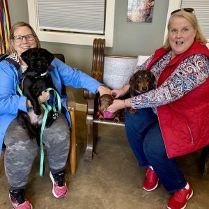 Although Spaceballs is a bit shy at first, he warms up quickly once he feels safe. As previous adopters of Polly P (NKA Penelope), who also came to us being a very reserved dachshund. Kate & Susan were overjoyed to give yet another the time and care they need to feel secure again. Especially after their Dachshund, Dallas, passed away earlier this year leaving a dachshund size hole in their heart. But Spaceballs isn’t the only new member of the family.. these two have recently adopted a puppy shitzu mix, named Moby, from Operation Kindness. Who adds the perfect playful energy to the pack. Spaceballs will have all he needs and more.. from daily morning walks, playtime parties with his new friends, endless sunbathing sessions, and even a chance to swim as the warmer season is near.