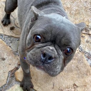 This Frenchie will be dropped off in Oklahoma for foster mom Trish. He will stay there and have his vetting done in Oklahoma.