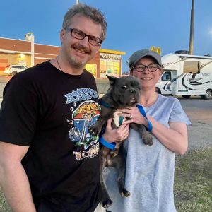 I had the pleasure of facilitating Van Halen’s adoption today. His final destination with his new pawrents will be New Hampshire, but right now he is visiting his new grand pawrents in the Dallas area. Joan and Paul Galloway-Snow picked him up in Paul’s Valley, Oklahoma in a brand spanking new RV. His new name will be Clyde and he will be traveling in style and have a wonderful home with a Boston and an English bulldog. I know you will see this boys wonderful life unfold on Happy Tails. As always, Laura, you nailed it!!! Thank you.